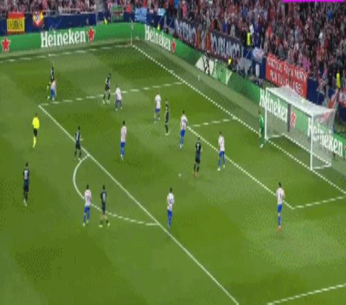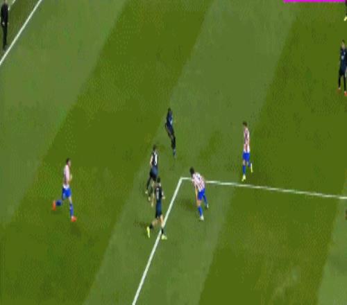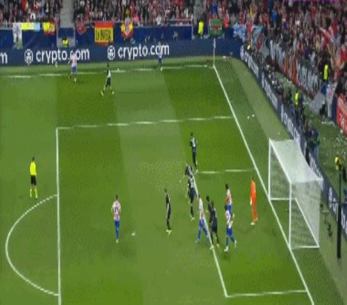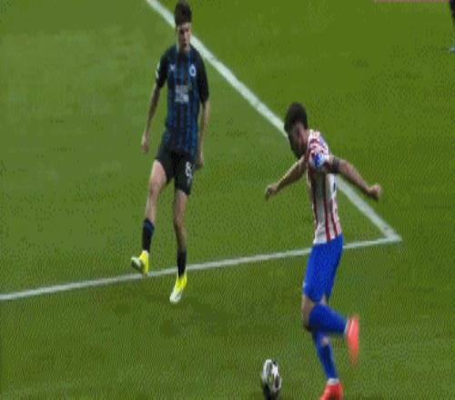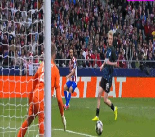 第36分钟,布鲁日角球机会,奥多涅斯头球顶进空门,马竞1-1布鲁日
