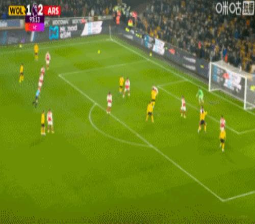 第61分钟,圣地亚哥·布埃诺打出世界波,为狼队扳回一球。补时最后阶段,埃多齐利用阿森纳门将拉亚出击失误,禁区内劲射破门完成绝平。