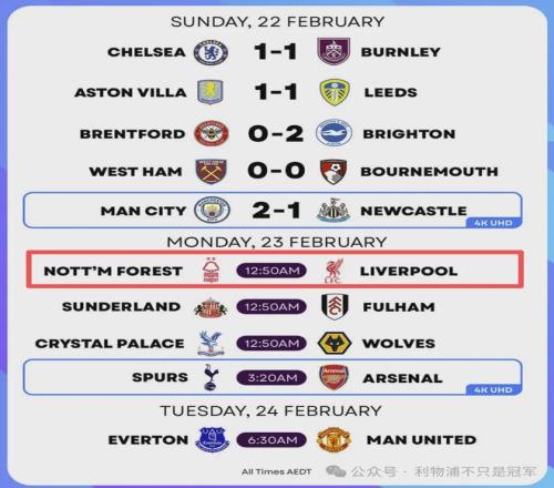 北京时间今晚22点,利物浦将在英超第27轮客场挑战诺丁汉森林(CCTV5+频道视频直播)。